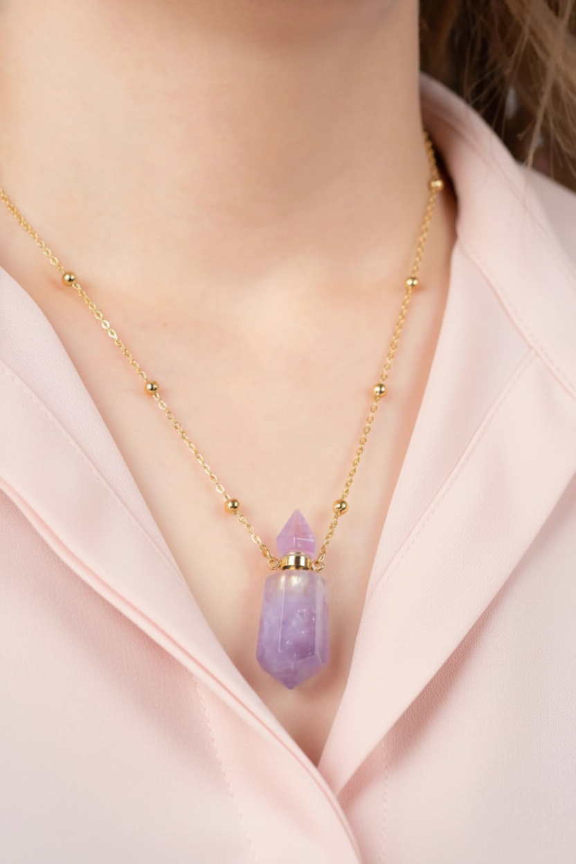 Ametist kuvars Doğal taş Esans Kolye Kapağı Açılabilir
