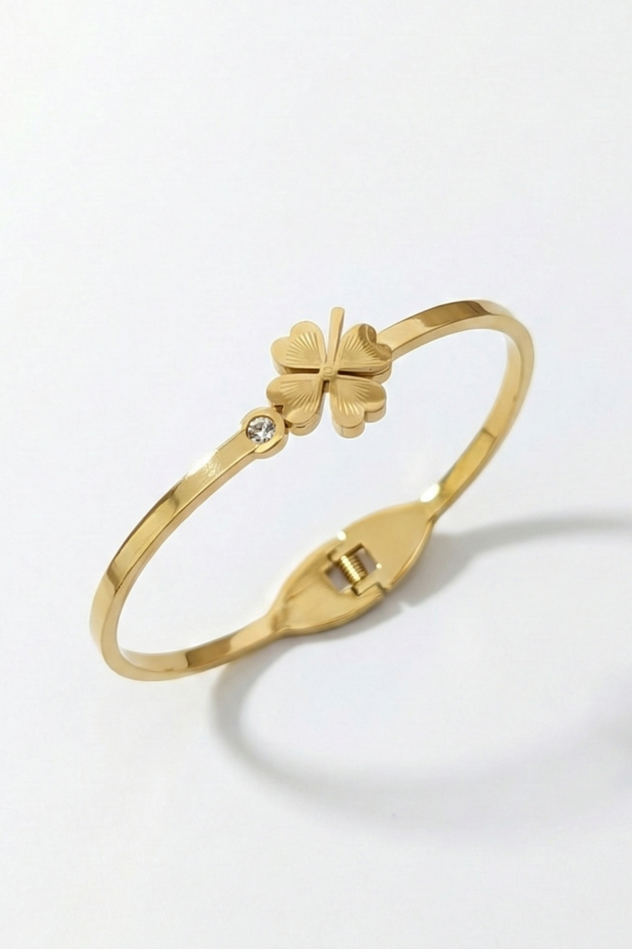 Çelik Yonca Taşlı Bileklik Gold