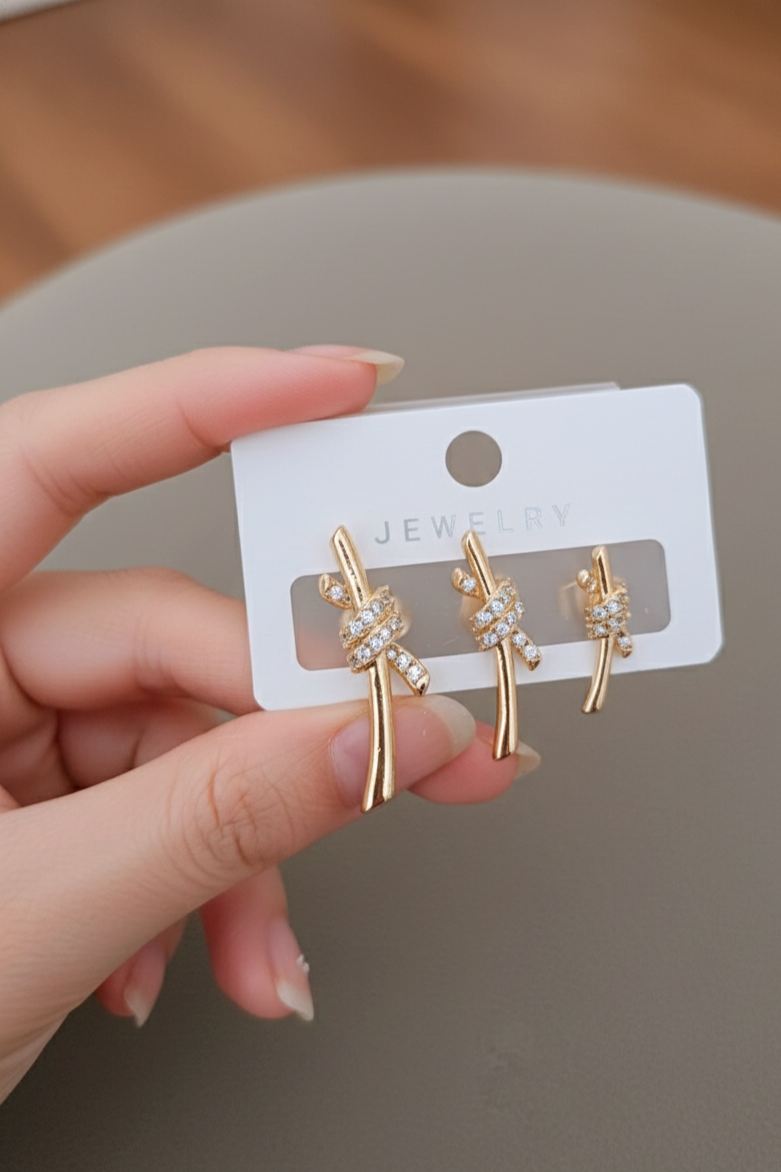 Ysx 3'lü Taşlı Küpe